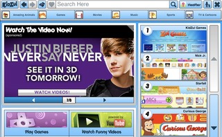 Paramount ran a KidZui campaign to push the new “Justin Bieber: Never Say Never” biopic. That involved featuring a movie trailer prominently on the KidZui homepage, and including an ad in the parental notification e-mails when kids “liked” the video. The ad clicked through to ticket purchase and showtime information.