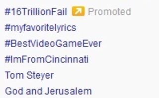 The group changed its paid trend term to #16TrillionFail this afternoon, referring to the latest federal debt tally, which has reached over $16 trillion.