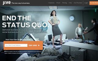 Jive Software, which sells collaborative, social technology, is positioning itself as a leader in the social business movement. “We want people to know that now they can collaborate and be productive at work using the social technologies that enhance their personal lives,” says John F. Rizzo, Jive CMO. Its new digital branding campaign, launched July 16, literally takes a sledgehammer to the workplace status quo.