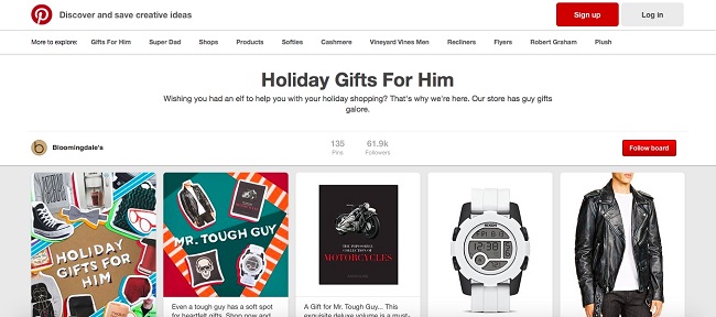 This past holiday season, brands of all kinds were searching for ways to get their products in front of Web and mobile shoppers. Bloomingdales reimagined the popular “gift guide” marketing format to create shoppable Pinterest boards. With categories ranging from Holiday Gifts for Her and Gifts for Him, to Gifts for Kids and Gifts Under $100, the retailer linked its boards to relevant pages on its site.