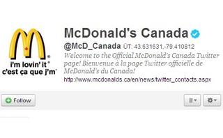 McDonald’s Canada today announced that it’s one of the first geotargeting testers for Twitter’s Promoted Accounts.