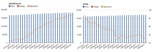 Fans and tweets are two fundamental elements we invest in a Weibo marketing campaign and that’s why I use them to come up with a ratio as the social momentum. As the charts above show, Adidas has a growing trend whereas HTC shows a downward trend. Should we conclude that Adidas has done a better job?