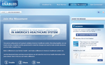 I Am Enabled was created “to build buzz around a viral ‘movement’ focused on how digital healthcare can enable citizens to take charge, participate in, and make smarter decisions about their health,” a Microsoft spokesperson told ClickZ News. The site drives people to Health Vault, Microsoft’s online service for managing and accessing personal health data, launched in October 2007.