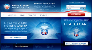 A recent search for “universal healthcare” prompted a sponsored link to the I Am Enabled site, which not only mimics Obama’s and Organizing for America’s calls to “Join the Movement,” but asks supporters to get friends and family involved. “Share the benefits of online health accounts with those closest to you, and add even more to the growing ranks of those who are calling out for positive change,” notes the site. “Better still, get them to hook up with I Am Enabled directly. It’s going to take lots of us to change healthcare for the better.” The site also suggests people talk to their physicians about the service.