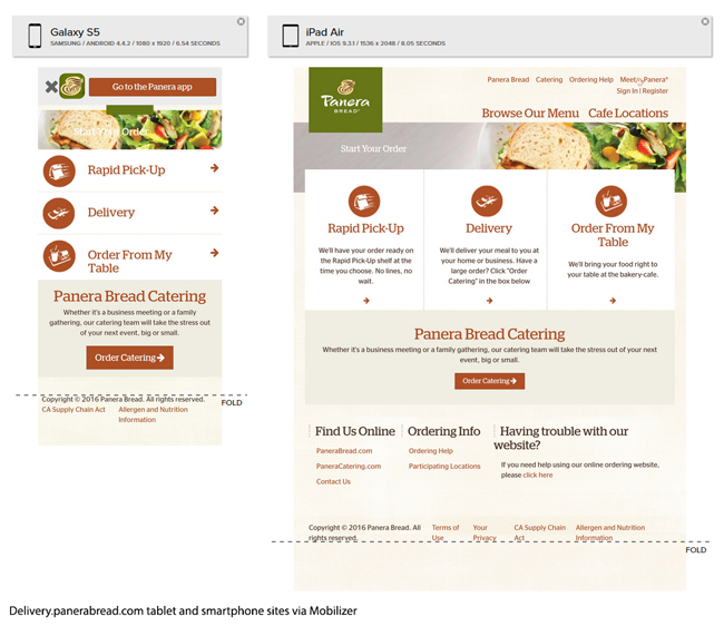 It is unclear if this impressive service originated from this tagline, but it’s evident on first glance at the Panera smartphone or tablet site that design was based on three very clear use cases: