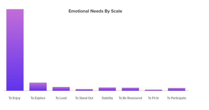 “Our takeaway is simply that as humans, we all want to ideally have an element of enjoyment and pleasure at all times,” says Klimaszewski. “Our theory is that on the path to enjoyment, people know what they like and how to find it. A brand advertiser message there might be intrusive, especially if it doesn’t fuel your love of whatever it may be. But during the need to fit in or be reassured, people feel more much vulnerable. A brand offering a particular lifestyle or sense of community might be more welcome.”