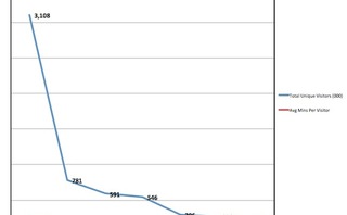 Another contender, Sina Weibo, had 591,000 unique visitors with each person spending an average of 50 minutes on the micro blog.