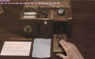 Visitors to the game’s site get a first-person view of someone in front of a device similar to an old Morse code transmitter, with a written code key alongside. They can click on the device, or “tap kit,” to write coded phrases that unlock messages and video to figure out the story. Players share clues with each other through social media. For instance, by following #tapjoint on Twitter, users learned about a mobile workaround that allows them to enter typewritten commands using their smartphones.