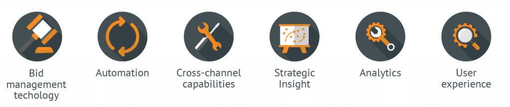 The vendors we assessed all showed advanced capabilities in the core areas of bid management and analytics, with more marked variations shown in the scoring for strategic insight and cross-channel capabilities.