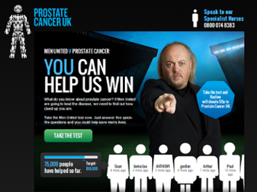 Only two days after the launch of its Men Vs. Prostate Cancer movement, Prostate Cancer UK had already reached its sign-up target. After seven, it had well surpassed that figure with 50,000 participants. Two weeks on, a staggering 75,000 people have signed up to support the digital campaign, which uses a quiz to draw in supporters.