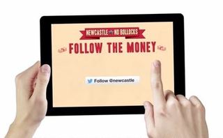 Newcastle has tweeted about “Follow the Money”, but Bell says the brand is basically relying on the premise of free money to generate attention.
