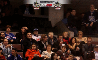The arena-spanning FanCam image – sponsored by TicketMaster – captured fans cheering in the stands at last night’s game and should be available for viewing online sometime tonight. In the first bout, the Los Angeles Kings beat the New Jersey Devils 2-1 in overtime.