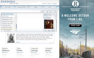 In fact, today, while an ad for Match.com appeared on Pandora’s site today, so did one from Amtrak.