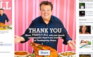 Viewers who clicked the shortened link landed on a dedicated Facebook page. The effort, dubbed “Feast for All,” used actor Eric Stonestreet, who stars in ABC comedy “Modern Family.” For the next week, each Facebook user who “likes” an image of the roly-poly Stonestreet with a Thanksgiving turkey donates eight meals to the goodwill measure.