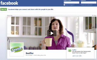 Procter & Gamble’s Swiffer is the latest brand using Facebook’s logout page ad. The floor cleaning apparatus stars in a video seen when people logout of Facebook.