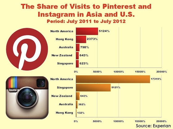 Niche social networks Pinterest and Instagram are growing in popularity, particularly in Singapore and Hong Kong.