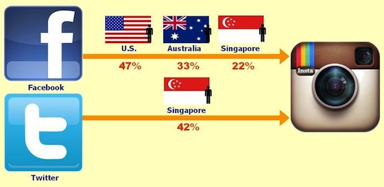 In Australia, 33 percent of traffic to Instagram is driven from Facebook. While in Singapore, Twitter represented 42 percent of all visits to Instagram, followed by Facebook (22 percent).