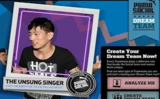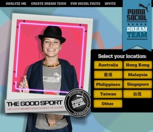 As captain of the team, you get to choose one of six social activities that will generate and automatically select and tag your Facebook friends under various social traits such as “celebrity,” “socialite,” or “blah blah blah” with a call to action tagline – “I’ve created my Puma Social Dream Team! Come and create yours too!”