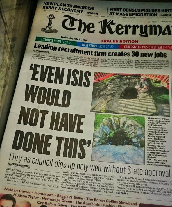 “How did you feel?” Stories thrive on drama and emotion and a writer will be looking for this. Be careful in the words used, as these might make the headline. Below is an example of a statement in the middle of an emotional speech on the front page of The Kerryman, that – taken on its own and turned into a headline – makes the speaker seem ridiculous. Advise the interviewee to choose the words with which they feel comfortable, and not be afraid to correct themselves.