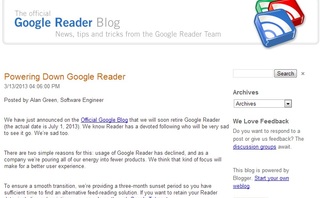 I can’t say that I was shocked by the news. More than anything I was just disappointed. I had spent lots of time scouring the web for reliable feeds that matched my broad, disparate interests and stored them in Reader. I integrated Google Alerts for work-related tasks, added lists of blogs that interested me, and stored updates from the brands I care about in Reader. Google’s constant beta approach ensured that Reader was refined to a high degree and offered a valuable tool for personal content curation based on an open standard, RSS. However, without executive support or a monetization strategy, Reader was seen as a less valuable offering in Google’s product portfolio (see bullet No. 6).