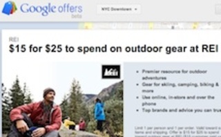 The first national Google Offers campaign launched this morning, as outdoors gear retailer REI is running a $25-for-$15 deal. The vouchers can be redeemed at the brand’s 100-plus stores or at REI.com.