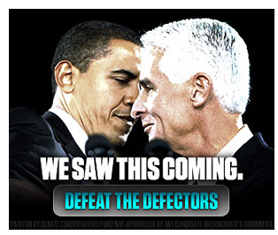 He finally decided to leave the party last week, giving Rubio and other Republicans more online fundraising fodder. The Crist/Obama approach must have worked. The Senate Conservatives – a group that backed Rubio’s money-bomb campaign, is using it again. This time the message is even more strident: “We Saw This Coming,” say the ads, demanding, “Defeat the Defectors.” Both the money-bomb campaign ads and the “defectors” ads were paid for by the Senate Conservatives.