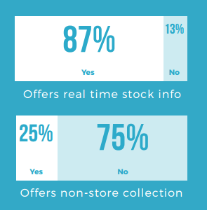 5. 87% offer real time stock info, and 75% offer non-store collection