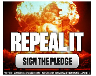 Like The Senate Conservatives, Freedom Works also ran ads promoting its petition on Drudge Report, which Keeley called “a big hub, especially in the conservative space.” Indeed – partly driven by ads on Drudge depicting an explosion accompanied by the words, “Repeal It” – the Senate Conservatives PAC generated hundreds of signups per hour this morning from people pledging to “support with my time, money, and vote only those candidates who vow to repeal President Obama’s health care takeover.”