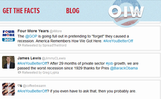 Are you better off now than four years ago? It’s the question pollsters and pundits are asking voters as the Democratic Party launches its convention today in Charlotte, North Carolina. The Republican National Committee aims to steal some of the DNC’s thunder on Twitter by asking the same via today’s #AreYouBetterOff Promoted Trend. But the effort has its risks, and the RNC’s own anti-Obama website is exposing them.