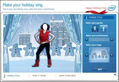 In the spirit of the popular ElfYourself app released by OfficeMax in 2006 (and relaunched every year since), Intel’s “Make Your Holidays Sing” microsite invites Web site visitors to create a 3-D animated version of themselves. The purpose of the offering is to create a customized music video and e-card that can be shared by e-mail and through social sites and social news services. Consumers can find the Intel application by linking from the brand’s Holiday Gift Guide.