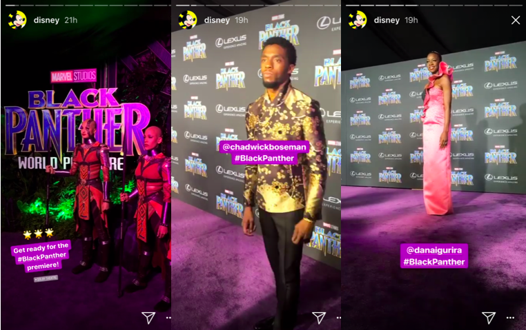 Disney wanted to promote the premiere of the Black Panther and they decided to bring their followers closer to it. With an audience of almost 11 million followers on Instagram, they have managed to give a glimpse of the premiere to everyone, posting photos from the actors while attending the event. Moreover, they made the content more appealing by posting short videos in the form of Boomerang, rather than static images.
