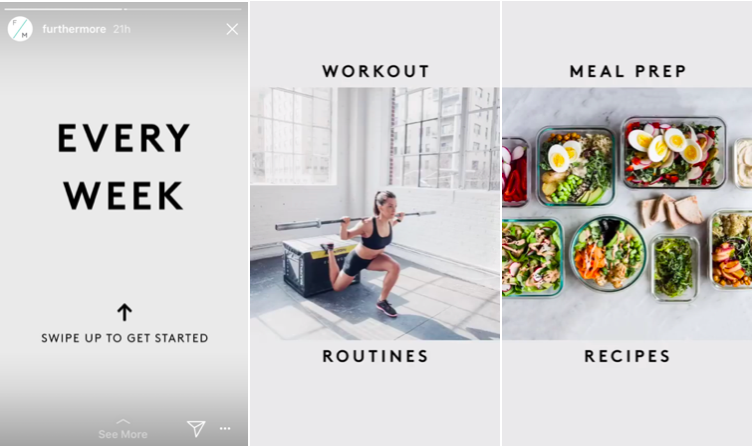 Furthermore from Equinox has decided to be creative on their Instagram Story. They have decided to promote their newsletter by highlighting their content categories. A series of images and a call-to-action offer another opportunity to build a loyal audience that wants to consume more of their content. This is a reminder of the importance to be creative to reach your goals. The CTA doesn’t have to be predictable, but you can still reach your targets if you use all your channels in the best possible way.