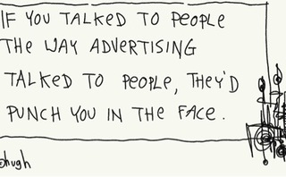 It’s OK; it’s not their fault. At some point along the way we decided that talking to our customers in a cryptic corporate jargon was completely acceptable. That’s why I use this cartoon with my clients: