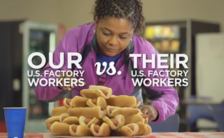 Each video features a New Balance employee at one of the company’s five U.S.-based factories in a solo sporting event of sorts that pits “our U.S. factory workers vs. their U.S. factory workers.” The punch line is a current score: “New Balance proudly employs more than 1,300 U.S. factory workers. Our competitors? 0.”