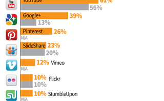 Social media sharing is also becoming an important way to gauge marketing effectiveness. Forty-five percent of B2B marketers say they use social media-sharing statistics to find out if their marketing efforts were effective.