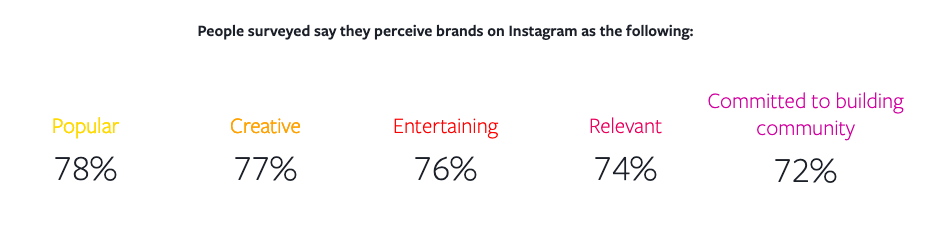 Instagram has become so popular that people simply expect from brands to have an account. According to the survey, brands that have an Instagram account seem to have a positive impression on potential shoppers. In fact, people perceive brands that are on Instagram as popular (78%), creative (77%), entertaining (76%), and relevant (74%).