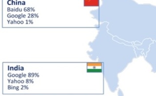 In China, Baidu leads the market with close to 68 percent of consumers using the search engine most frequently, followed by Google at 28 percent.