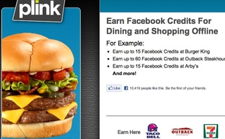 Consumers register their credit or debit card at Plink.com to get started. When they pay with the card at a brand partner location, they earn Facebook Credits that can be used to purchase virtual goods on Facebook games. The retail brands pay for the Facebook Credits in exchange for foot traffic.