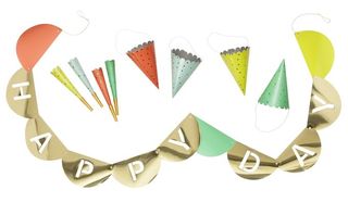 “Known for her bold use of color and pattern, and a keen eye for detail, Joy’s collection is inspired by a modern garden party and includes everything from whimsical banners and sparkly party hats to gold-rimmed cups that range in price from $3 to $25,” Target says.
