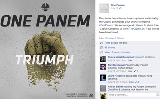 Fans of The Hunger Games know Panem (aka “The Capital”) as the post-apocalyptic nation where the books and films take place. Online, it has its own website, Facebook page, Twitter handle, Instagram page, and hashtag (#onepanem). Each platform is used for the common purpose of underscoring the nation’s control over the characters in anticipation of the release of the third film this fall. Teaser videos designed to appear as though they aired on “Capital TV” feature the story’s fictional president and hint at what’s to come in the next installment. This kind of exclusive content gives consumers a reason to follow, while generating excitement and buzz.