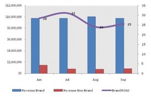 Looking at the bottom line, a surge in non-brand revenue was seen during the immediate dial-up month (June) along with clear revenue growth against the brand terms with extremely healthy returns on investment as well (Figure 2).