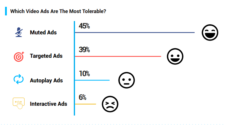 45% of people answered that muted ads are more tolerable, while 39% of them considered targeted ads a crucial factor for tolerable ads.