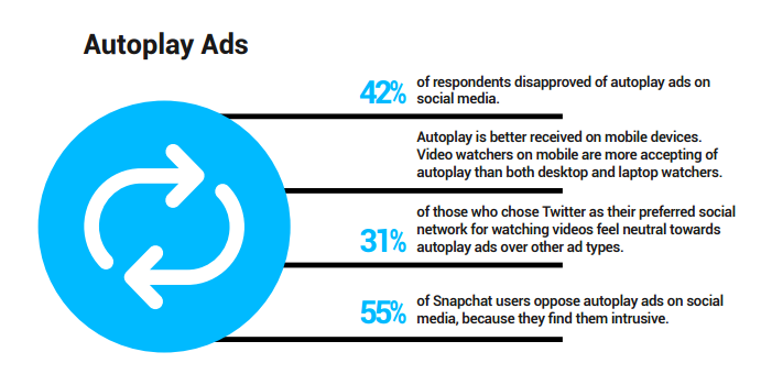 It seems that mobile users are more receptive to autoplay ads and this could be related to the highly targeted content they’re exposed to. However, Snapchat users don’t seem to agree, as 55% of them find autoplay ads intrusive.