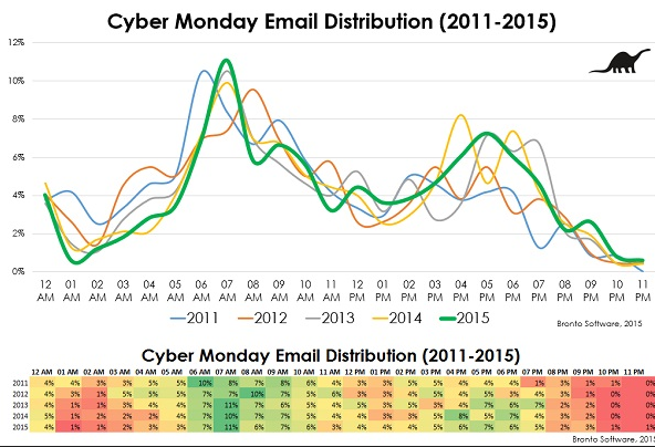 When planning your promotion timing for a peak shopping day, you should also consider when your customers will likely open their inbox for the first time and where they’ll be. Holidays that fall on a weekday, when most are at work or school, will have different traffic patterns than those that fall on a weekend or a holiday when shoppers have the day off.