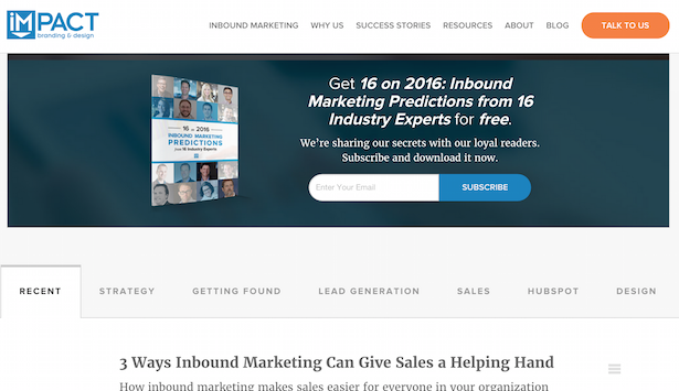 Just take a look at how the Impact Blog situates their calls to action if you’re in need of inspiration. There’s no wasted space, and they really know who their readers are.