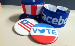 “Facebook and Twitter have a good synergy here,” said Andrew Noyes, manager of public policy communications for Facebook, who is getting used to pointing to his left and saying, “I’m with Facebook; that’s Twitter over there.”