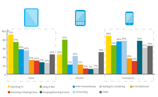 In fact, according to a survey of nearly 12,000 device owners, Nielsen suggests tablet users make use of their device in front of the TV more than in any other situation, followed by lying in bed, and then with friends or family.