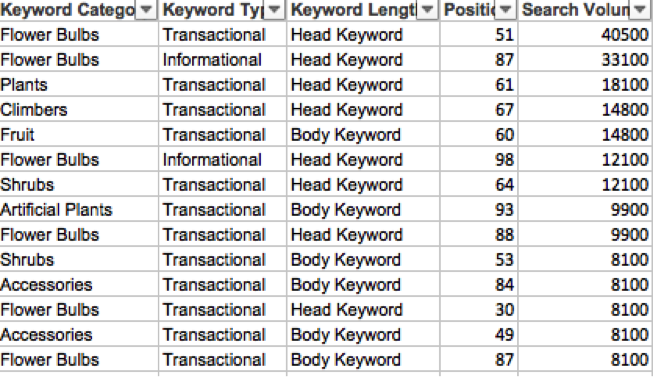 Firstly, you need to categorise your terms by intent. We’re trying to identify which terms are informational as opposed to commercial intent.