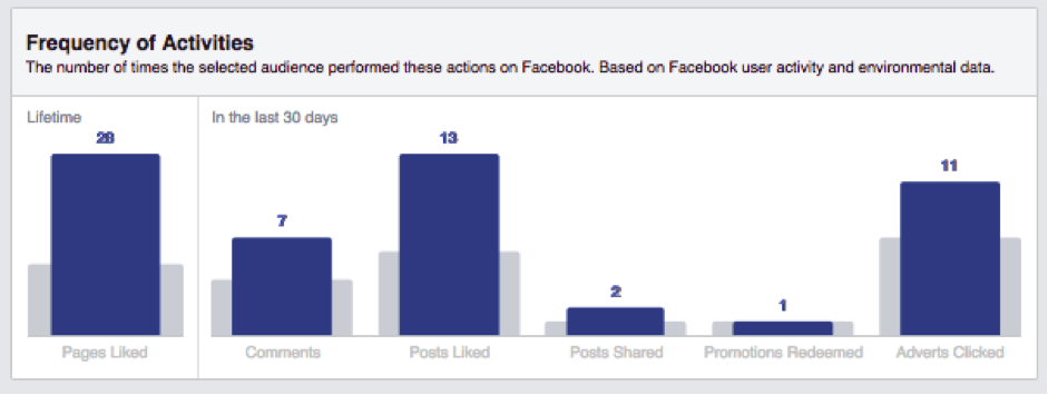 Facebook audience insights also has a report which shows the likelihood of our content being successful on the platform. This is called the frequency of activities report: