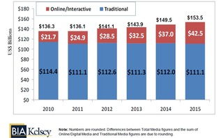 BIA/Kelsey suggested maturing online ad products, increased usage of smartphones and tablet devices, and continued disruption of traditional newspaper models are driving momentum for local online ad spending.